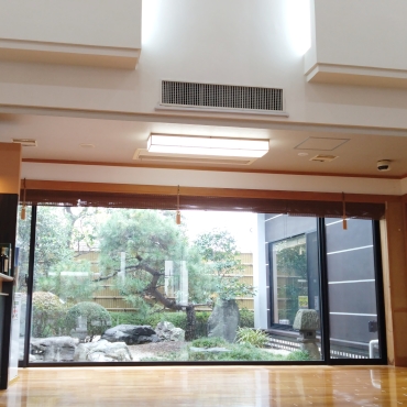 店内は吹き抜けのロビーがあり、建物の内外のユニバーサルデザインに配慮した 落ち着いたお席をご用意しております。