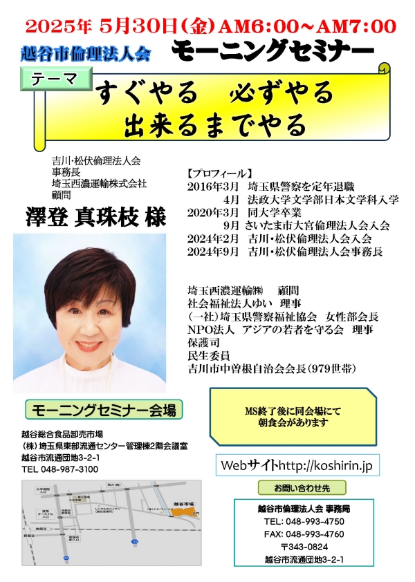 ・ 5月30日 越谷市倫理法人会MSのお知らせ