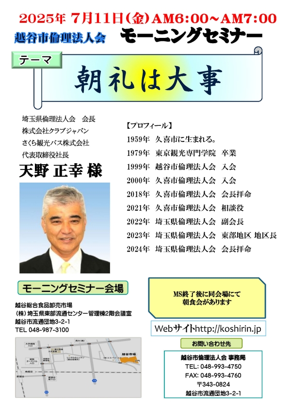 ・ 7月11日 越谷市倫理法人会MSのお知らせ