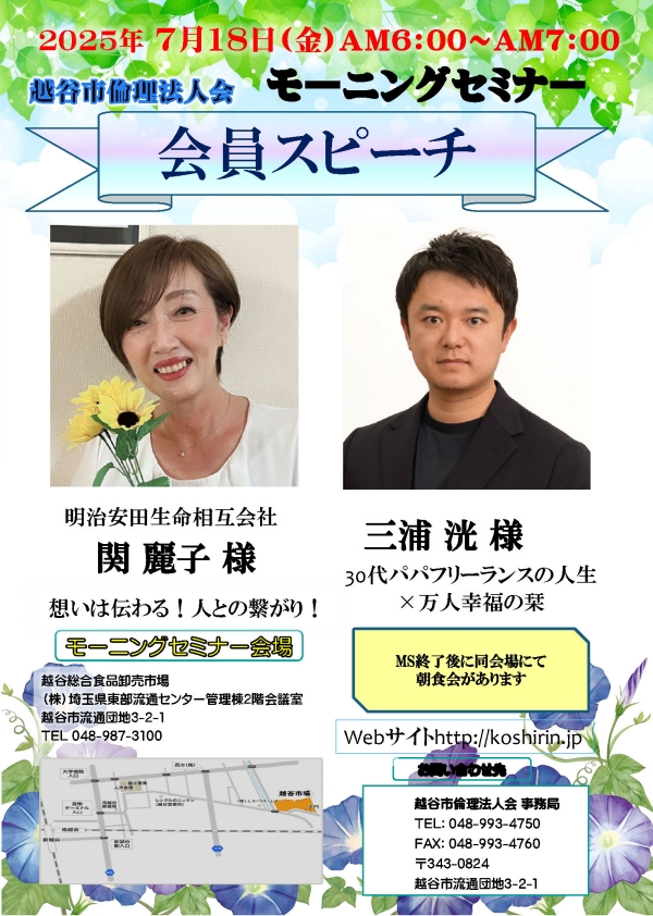・ 7月11日 越谷市倫理法人会MSのお知らせ