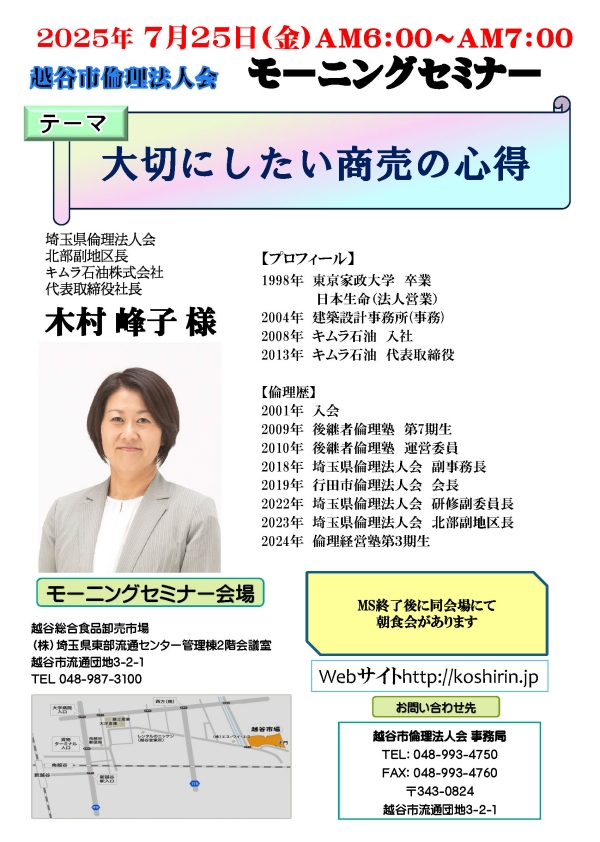 ・ 7月25日 越谷市倫理法人会MSのお知らせ