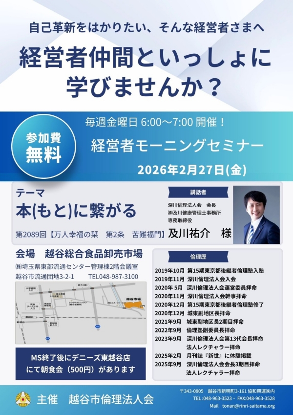 ・ 2月27日 越谷市倫理法人会MSのお知らせ